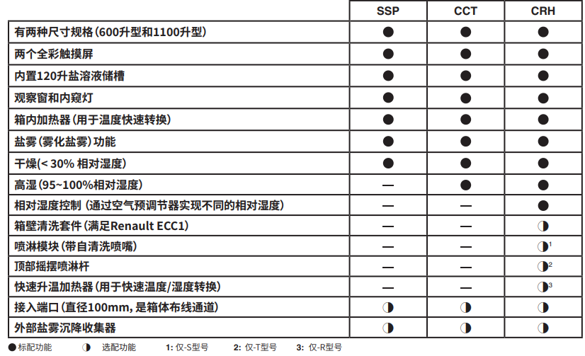 Q-FOG CCT型鹽霧箱除具有SSP型的所有功能外,還具95~100%的高濕功能。如今,汽車腐蝕試驗方法通常要求將試樣重復(fù)暴露于鹽霧、高濕、低濕干燥以及室溫等循環(huán)測試條件下。此外,CCT型號能夠運行CASS試驗,如ASTM B368或ISO 9227 CASS。適用于帶相對濕度(RH)控制的汽車循環(huán)腐蝕試驗的CRH型鹽霧箱符合絕大多數(shù)重要的汽車腐蝕試驗標(biāo)準(zhǔn),如GMW 14872, SAE J2334,F(xiàn)ord L-467,Renault ECC1 及其他 ISO(國際標(biāo)準(zhǔn)化組織)、VW(大眾汽車)、Volvo(沃爾沃)、Chrysler( 克萊斯勒)等的標(biāo)準(zhǔn)。它還可以通過使用創(chuàng)新的空氣預(yù)調(diào)節(jié)器來實現(xiàn)全面的可變濕度控制。此外,該機(jī)型還包括可選進(jìn)行程序設(shè)定的噴淋功能,這種先進(jìn)噴嘴清洗功能可以避免普通鹽霧箱常會發(fā)生的噴嘴堵塞現(xiàn)象。 快速升溫功能使得Q-FOG CRH在箱體滿載的情況下也能滿足快速的升溫和轉(zhuǎn)換,就像JASO M609 等標(biāo)準(zhǔn)中所要求的那樣。