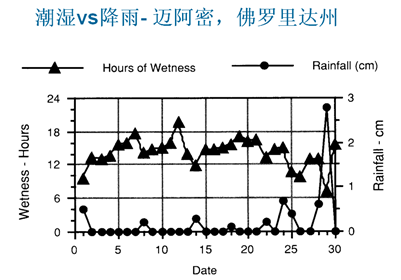 圖7:邁阿密地區(qū)一個(gè)月中潮濕和降雨的時(shí)間分布
