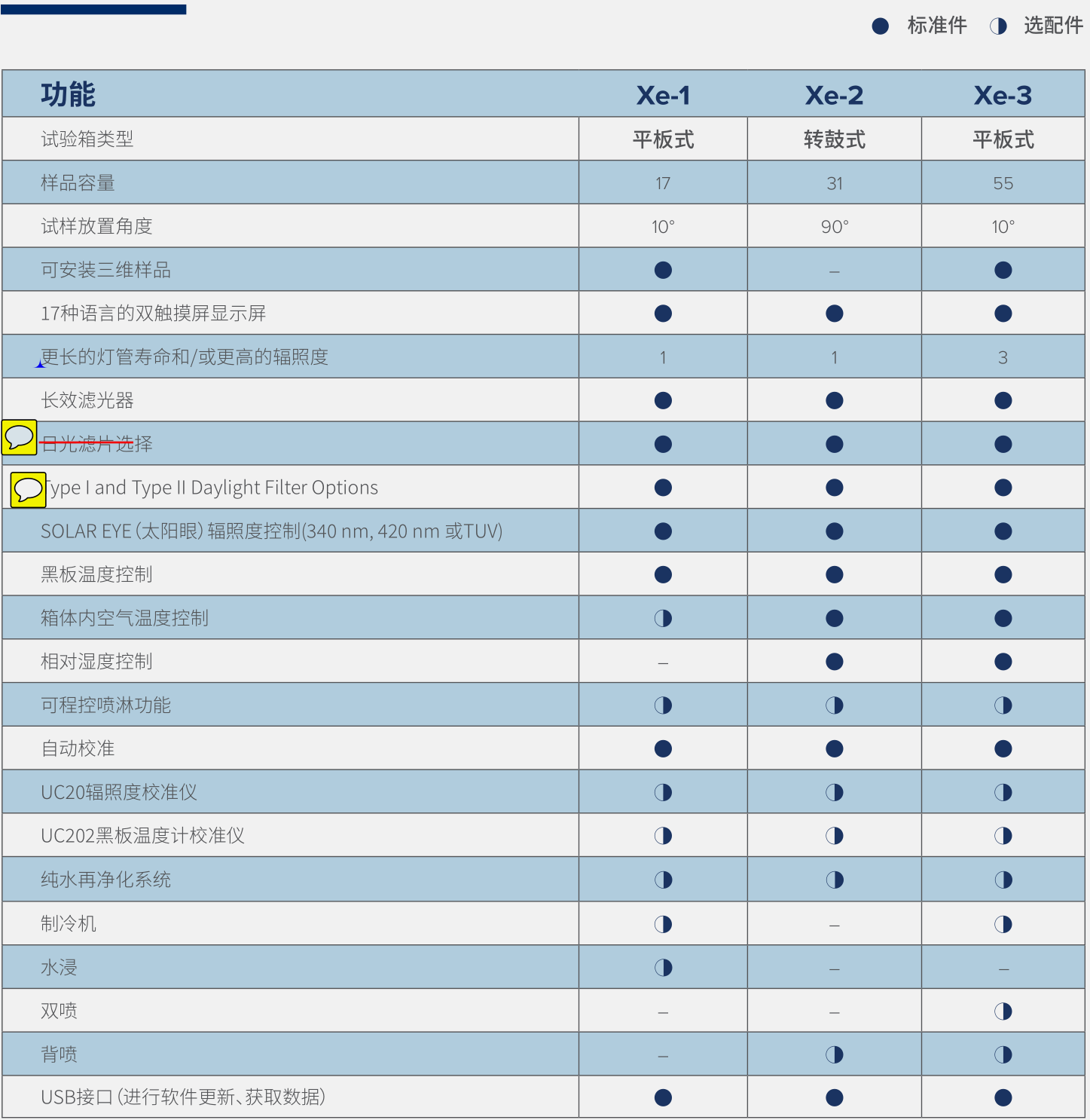 氙燈試驗(yàn)箱的三種基本型號(hào)適用于任何實(shí)驗(yàn)室: Q-SUN Xe-1 臺(tái)式平板試驗(yàn)箱、 Q-SUN Xe-2轉(zhuǎn)鼓式試驗(yàn)箱和Q-SUN Xe-3大容量平板式試驗(yàn)箱。所有全功能的耐老化、色牢度和耐光性試驗(yàn)箱,符合所有主要測(cè)試標(biāo)準(zhǔn)。
