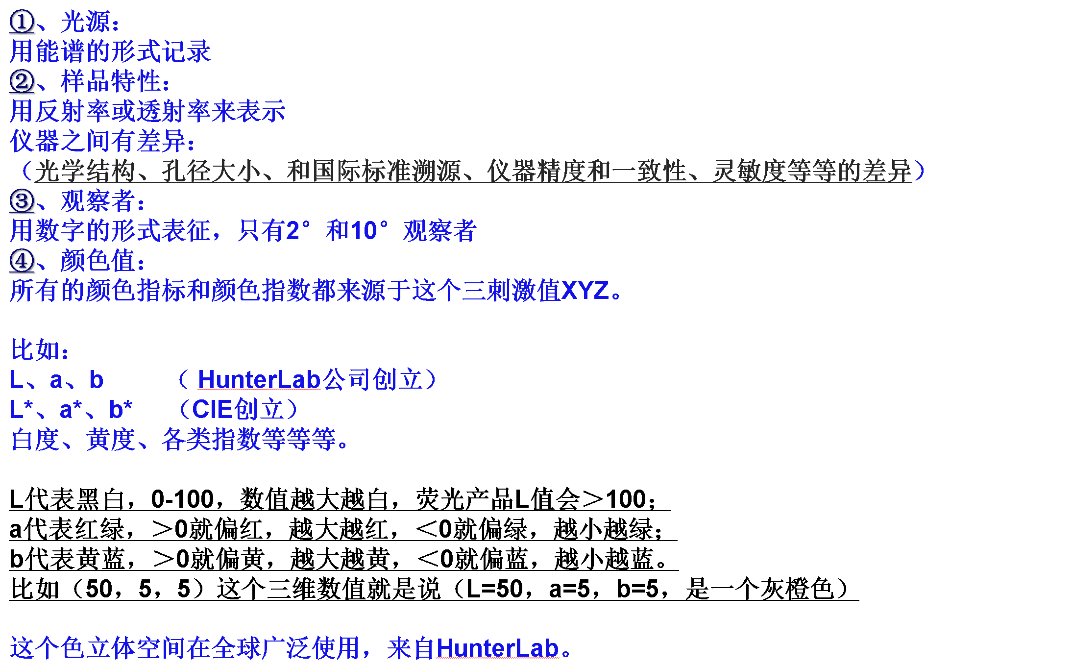| 常用指數(shù)及指標(biāo) | E313 白度, Tint, E313 黃度, D1925 黃度, Y 明度, Z%, 457 nm 白度(藍(lán)光白度), Baking Contrast Units, HCCI, SCCA, ASTM E1349, 霧度: ASTM D523, ASTM D2457, ISO 2813, ISO 7668, JIS 28741 |