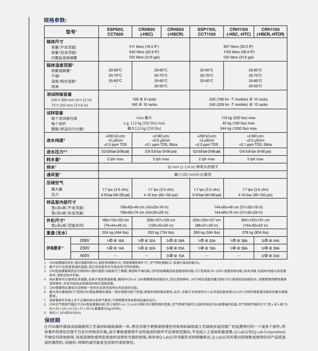 循環(huán)腐蝕測試 在Q-FOG循環(huán)腐蝕鹽霧箱中,樣品曝露于模擬戶外的、 重復(fù)循環(huán)的一系列不同環(huán)境中。簡單的循環(huán),如Prohesion循環(huán),可以在鹽霧和干燥之間循環(huán)。 更復(fù)雜的汽車測試方法可能需要結(jié)合濕度或冷凝,伴隨著鹽霧和干燥一起的多步循環(huán)。 在一個Q-FOG鹽霧箱中,它可以通過一系列最重要的腐蝕環(huán)境進(jìn)行循環(huán)。 甚至極其復(fù)雜的測試循環(huán)都可以很容易地用Q-FOG控制器編程實現(xiàn)。參見 LF-8110 - Q-FOG規(guī)格說明 或訪問我們的 標(biāo)準(zhǔn)頁面了解Q-FOG鹽霧箱測試方法的詳細(xì)清單。 型號