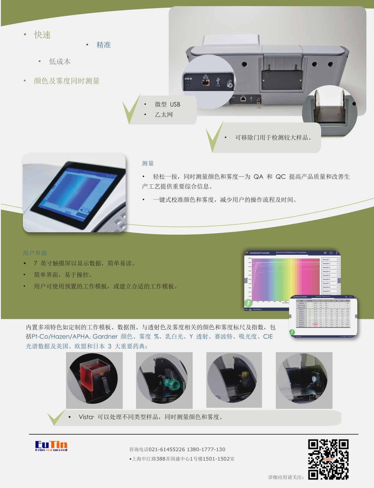 | 其他 | Spectral Data (%T and Absorbance), Spectral Plot (%T and Absorbance), Trend Plot, EZ View, Color Plot |