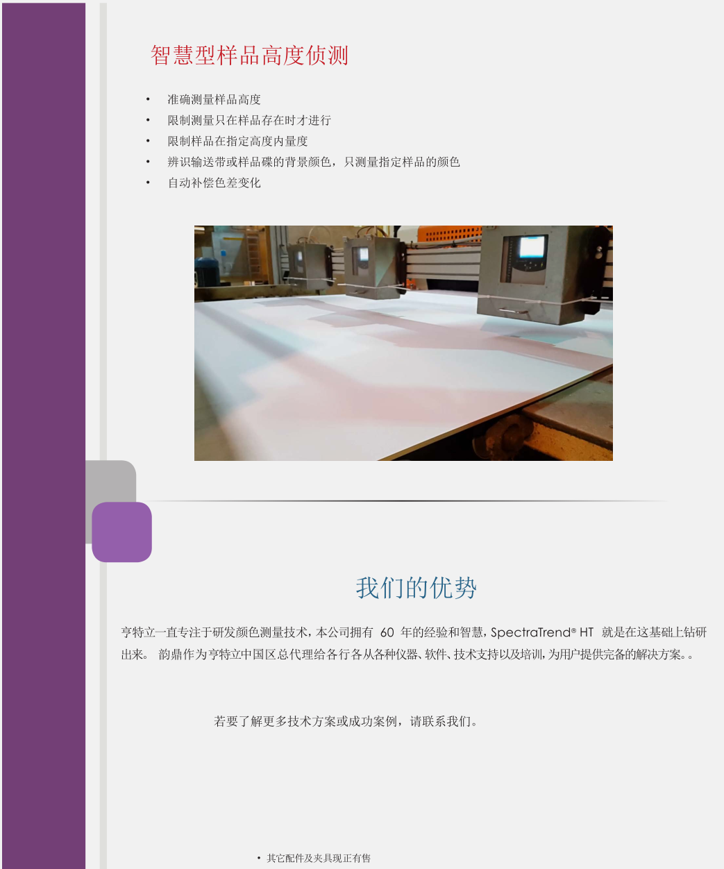 定向型0°/30°-在線色差儀。SpectraTrend HT在線色差儀(計(jì))設(shè)計(jì)堅(jiān)固耐用,可適用于各種工廠的嚴(yán)酷環(huán)境。0°/30°光學(xué)幾何結(jié)構(gòu)為“看”顏色提供了較好的角度。在線顏色測(cè)量系統(tǒng)給您提供連續(xù)的產(chǎn)品顏色信息,使您快速?zèng)Q定優(yōu)化生產(chǎn)加工過(guò)程,保證產(chǎn)品質(zhì)量。大量節(jié)省時(shí)間和人工成本。